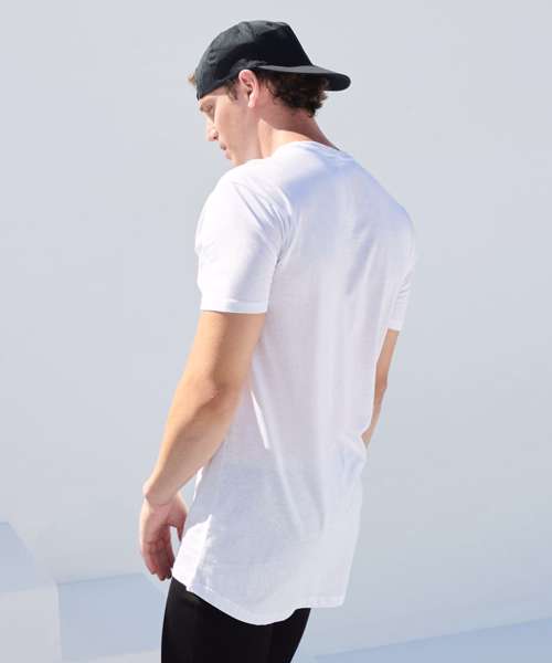 The extra long-length and regular fit at chest and shoulders provides great creative opportunities for a cool logo, motif or fashion slogan. With urban-feel drop tail hem and stretch ribbed crew neck finish. Tear-out label for easy rebranding.